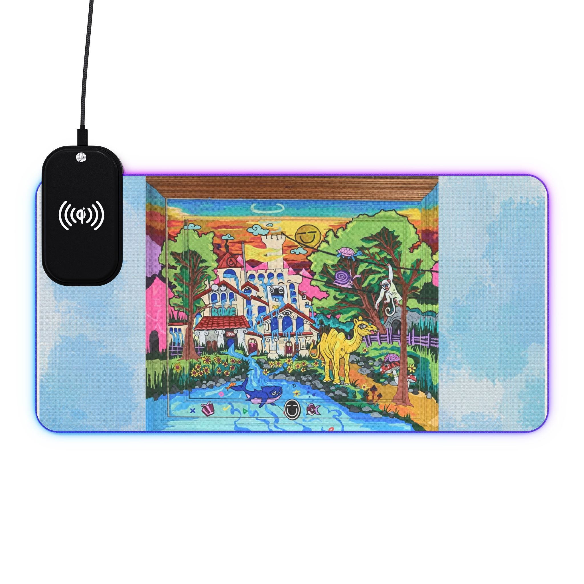 Blue Castle Mousepad | LED Strip & Wireless Charger