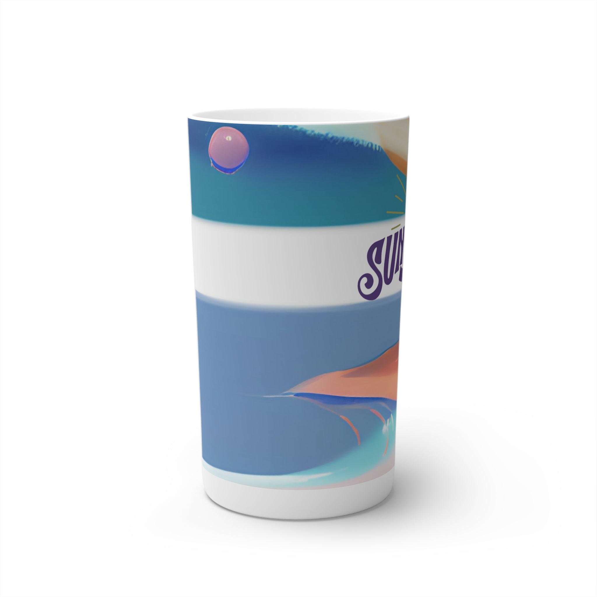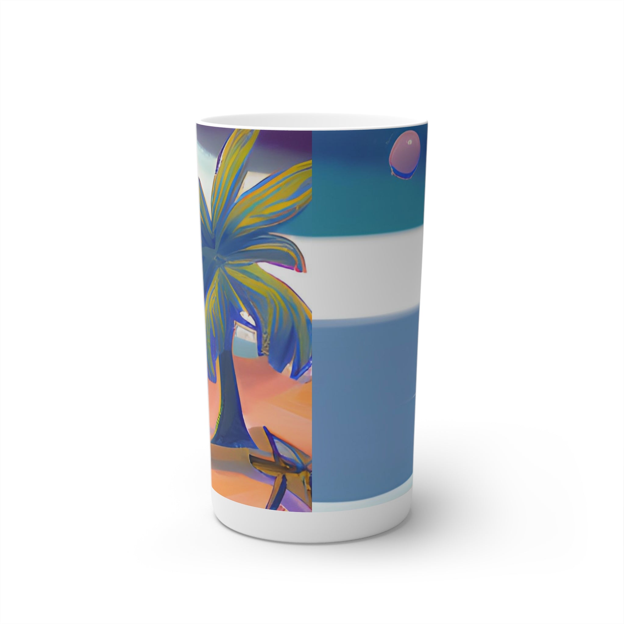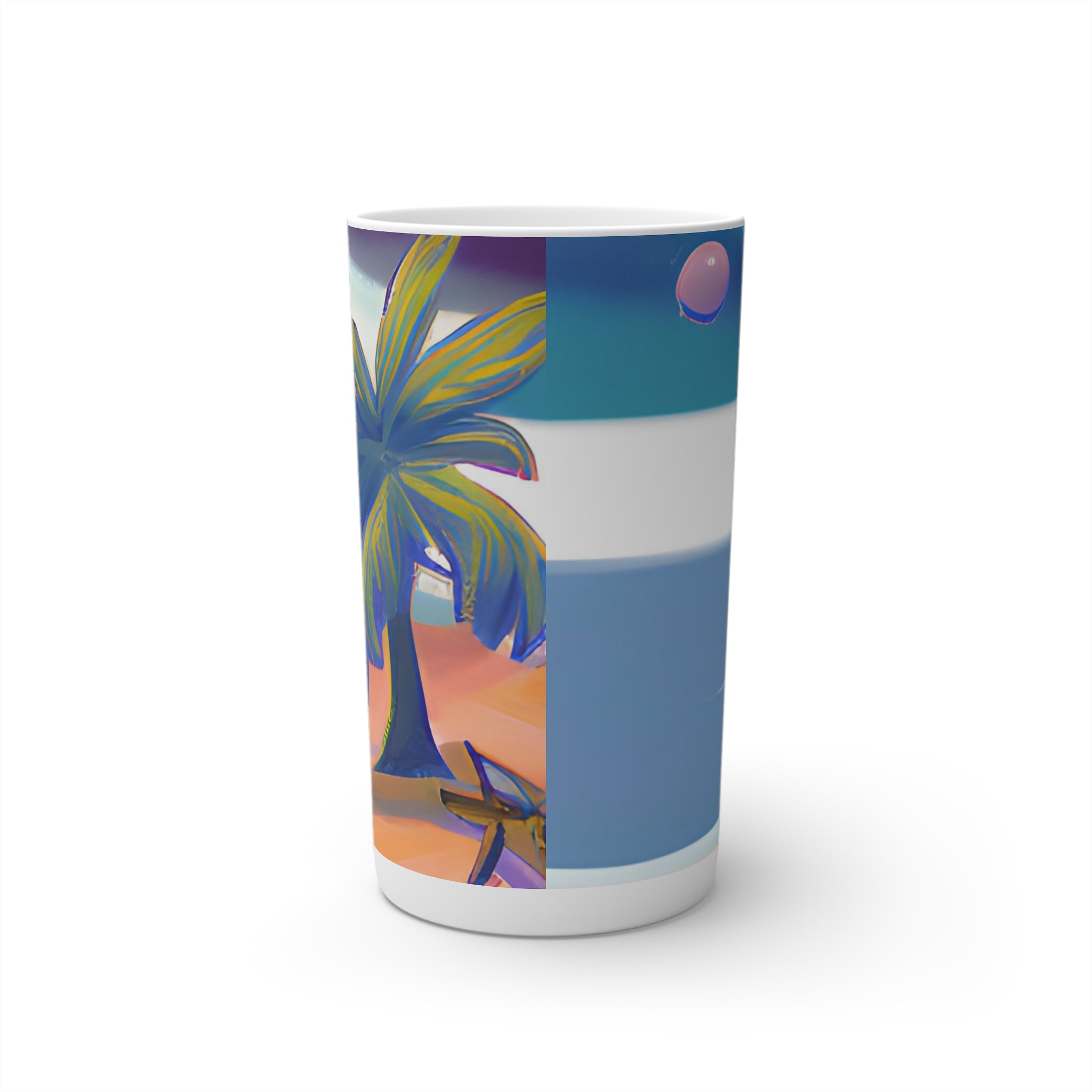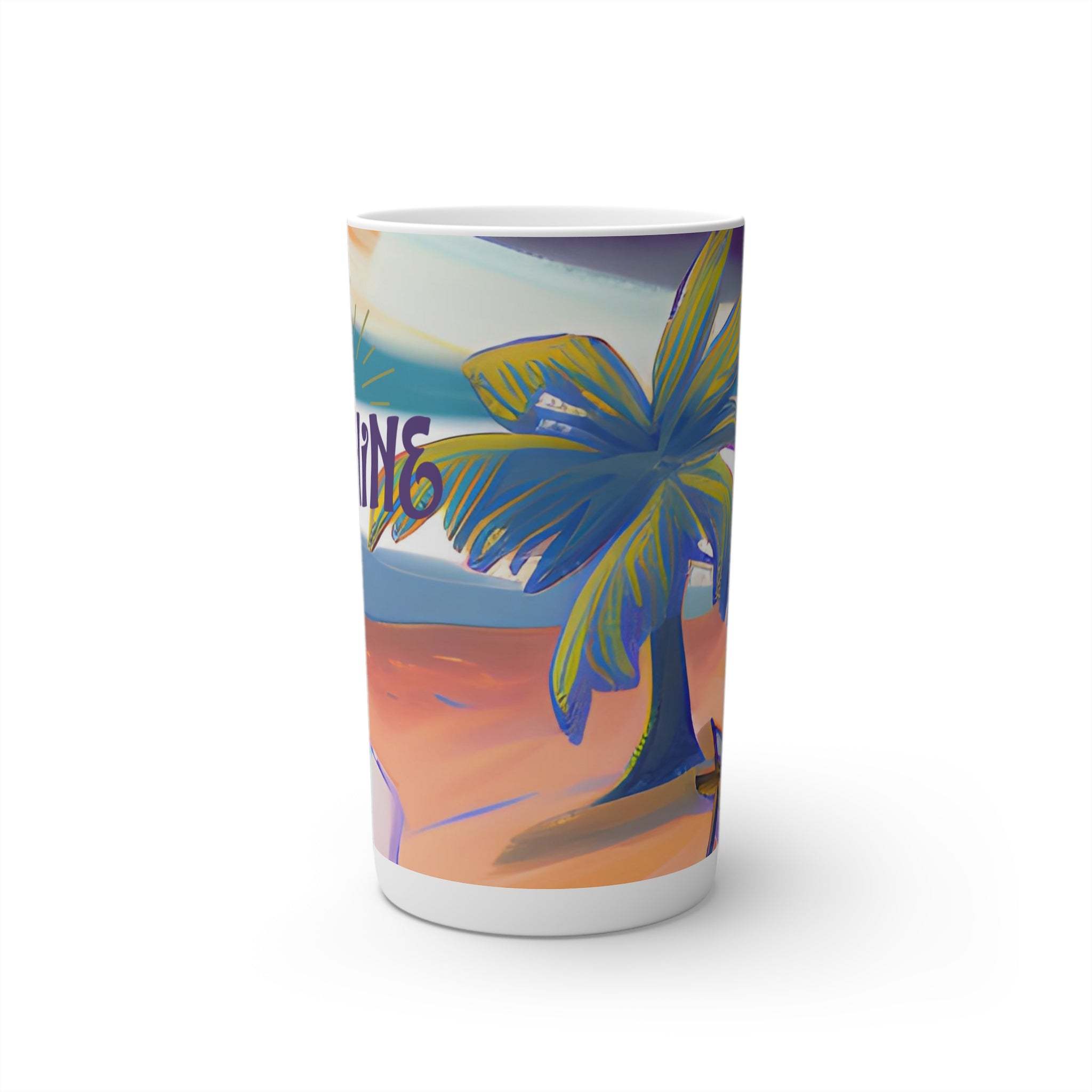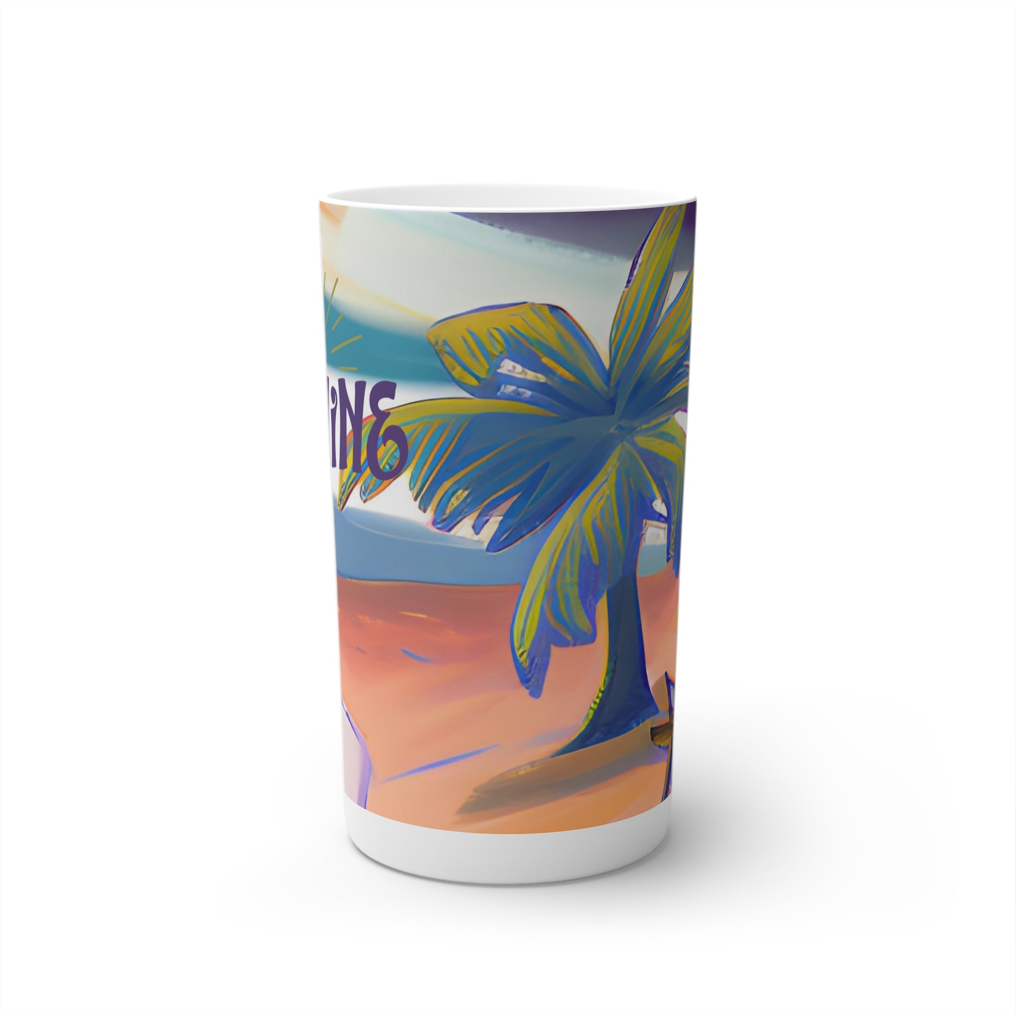 Set sail to distant shores with our Island design. Perfect for those who dream of sandy beaches and clear blue waters, let this mug transport you to your personal paradise. Or for starting any day on the brightest note, this Island coffee mug is the ideal way to sip this morning's pick-me-up. Made with durable white ceramic material, each cup features the signature conical shape that you'll find in professional cafes, and can accommodate your ideas in a full wrap-around print. Available in 8oz, 12oz and in espresso size of 3oz.