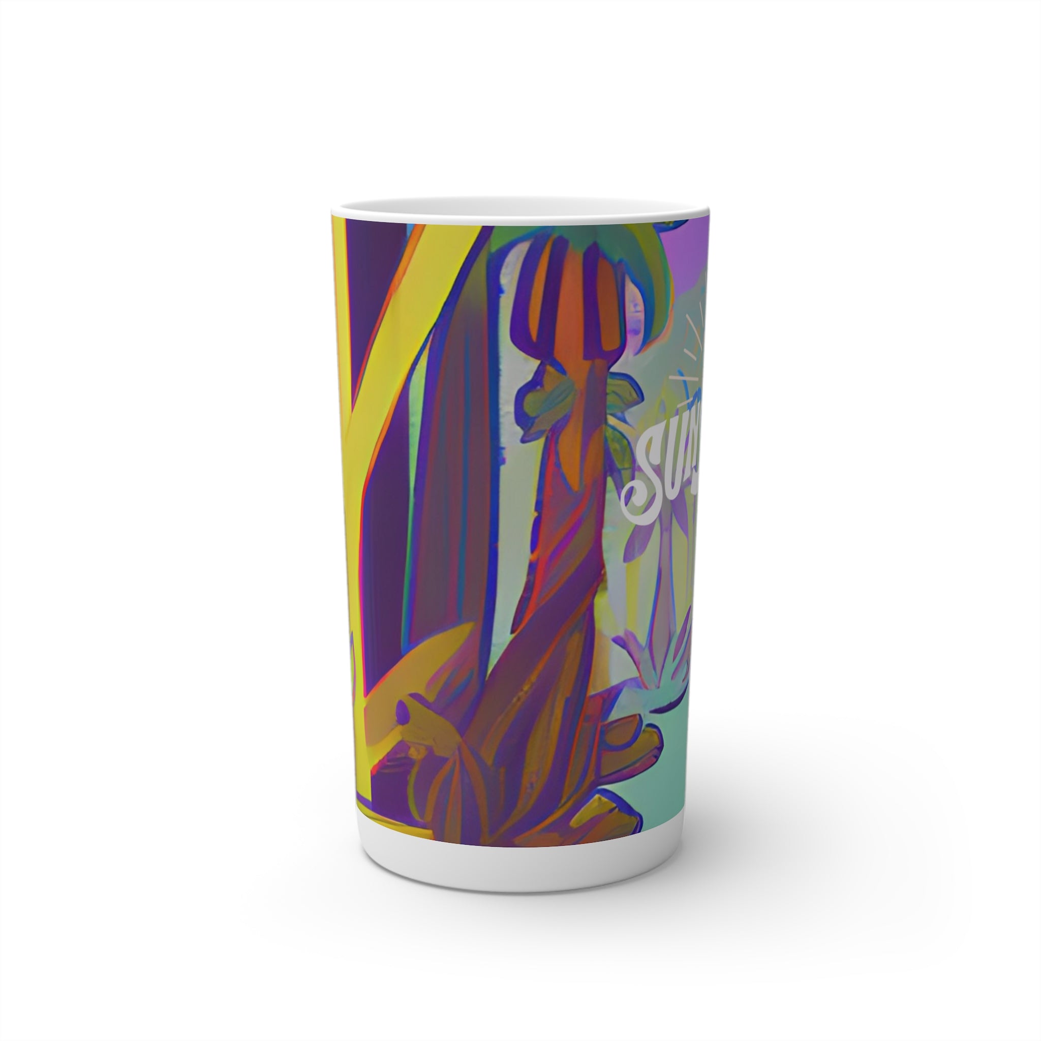 Experience the allure of tropical getaways with our Palms design. With every sip, immerse yourself in the cool shade of majestic palm trees, letting the island breeze whisk you away. Or for starting any day on the brightest note, this Palms coffee mug is the ideal way to sip this morning's pick-me-up. Made with durable white ceramic material, each cup features the signature conical shape that you'll find in professional cafes, and can accommodate your ideas in a full wrap-around print. Available in 8oz, 12oz and in espresso size of 3oz.